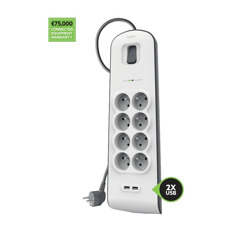 Belkin Multiprise parafoudre 8 prises avec 2 ports USB intégrés