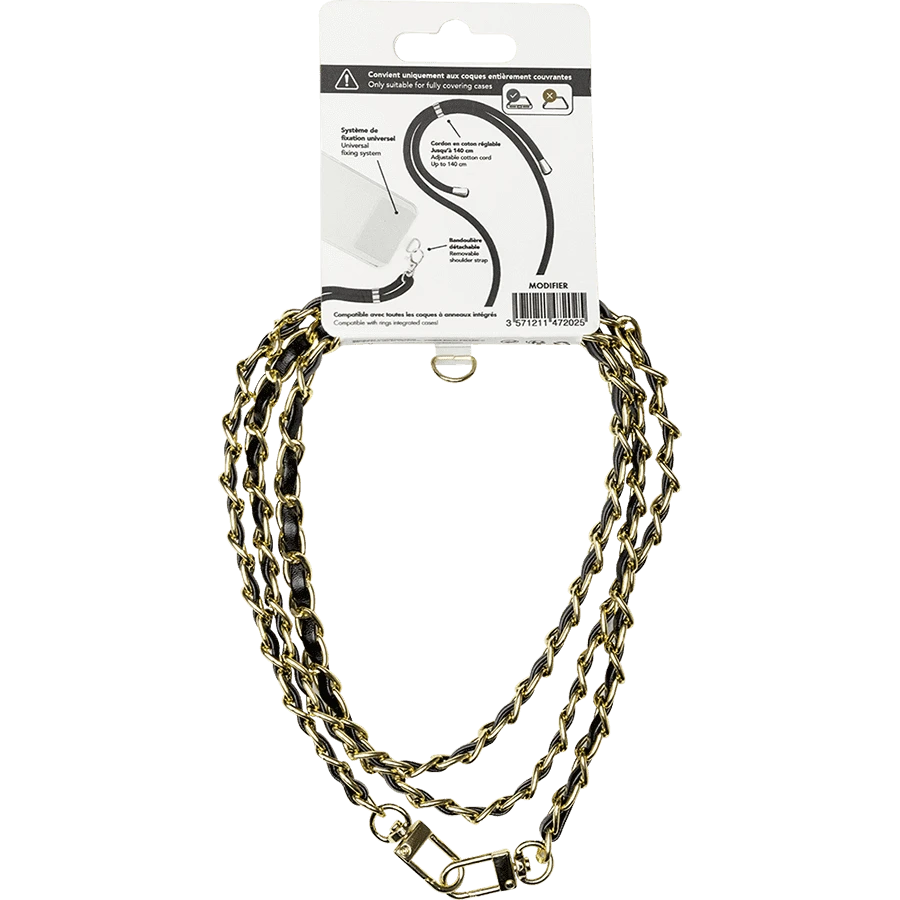 Les caractéristiques du Bandoulière téléphone universelle chaîne gold et noire