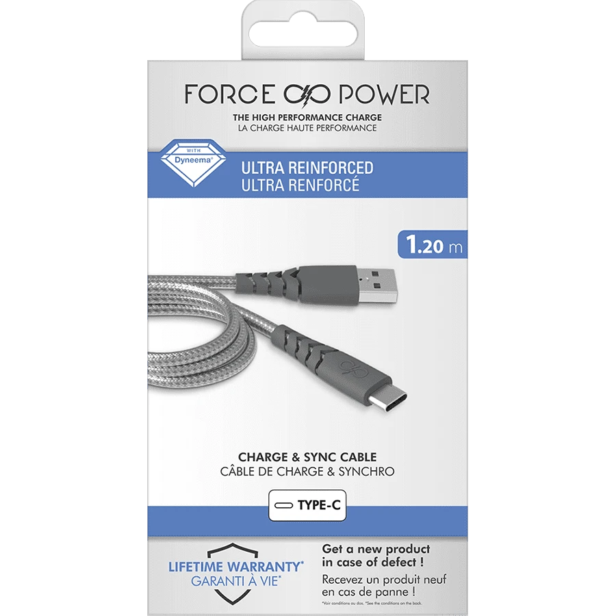 Force Power Câble renforcé USB-A/USB-C 1.2 mètre