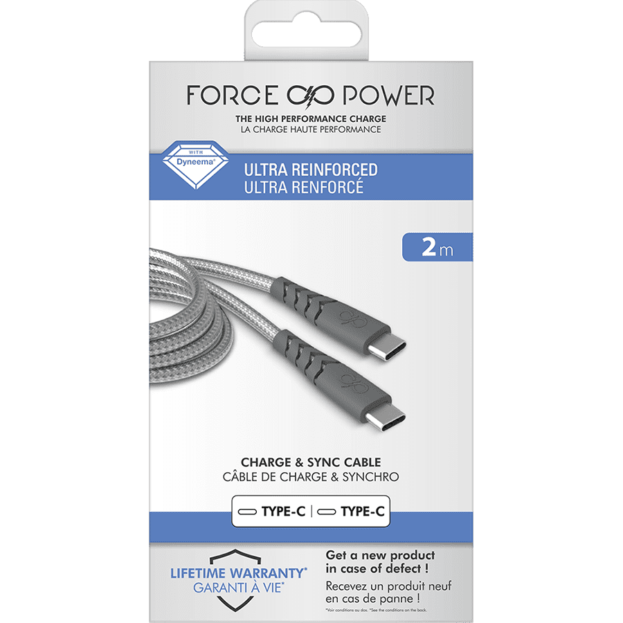 Force Power Câble renforcé USB-C/ USB-C 2 mètres