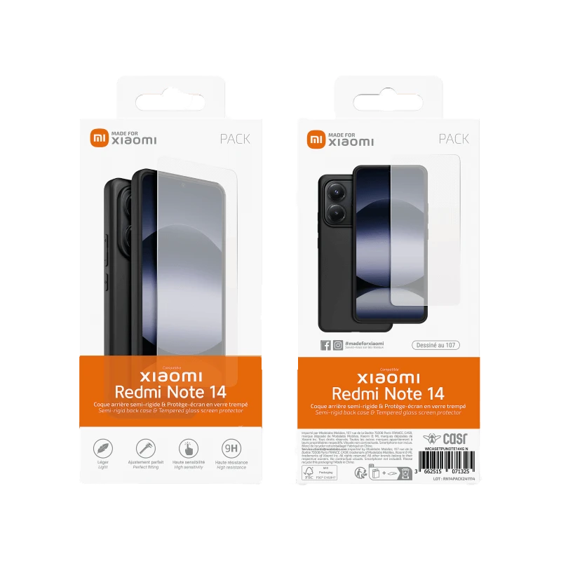 Les caractéristiques du Pack protection (coque+verre trempé) pour Xiaomi Redmi Note 14 4G