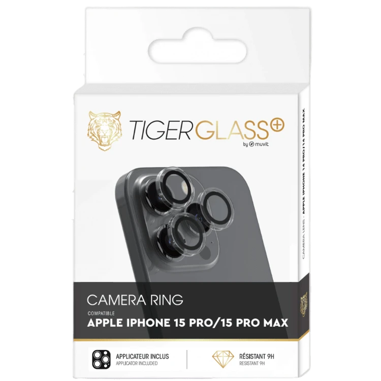 Tiger Glass plus Protège Caméra ring pour iPhone 15 Pro et iPhone 15 Pro Max
