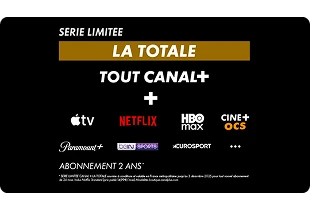 Bbox ultym Smart TV : Offre valable à partir du 03.12.2025 pour toute première souscription, sous réserve d’éligibilité en fibre jusqu’au domicile et de raccordement. Engagement 2 ans. Frais de mise en service : 48€ ; frais de résiliation : 69€. Appels illimités vers les fixes et mobiles France / DOM/EUROPE et fixes de 110 destinations jusqu’à 199 correspondants différents (au-delà : facturés hors forfait). Remise de 7€/mois en cas de souscription simultanée d’un forfait Bouygues Telecom 20 Go et + et d’une Bbox ultym Smart TV ou pour les déjà clients mobile Bouygues Telecom 20Go et + ou pour les clients ayant souscrit à un forfait Bouygues Telecom 20Go et + dans les 12 mois suivant la souscription à une Bbox ultym Smart TV, soit 52,99€/mois. Remise sur facture de 7€/mois pendant 12 mois, soit 52,99€/mois puis 59,99€/mois pour les non-clients mobile ou les clients mobile 20 Go et -, clients B&You et Prompto. En cas de résiliation avant la fin de la période d’engagement, perte des remises et facturation des mois restants dus au tarif mensuel de l’offre hors promotion (et hors location box). Communications (hors n° courts et spéciaux) à usage privé entre 2 individus. Bbox Ultym : débit maximum théorique descendant jusqu'à 8Gb/s et débit maximum théorique montant jusqu'à 8Gb/s avec option Débit + gratuite sur demande, sous réserve d'éligibilité et d'équipement compatible (avec module ou carte 10G) branché en filaire. Pour les clients non éligibles ou non détenteurs à l'option Débit + : débit maximum théorique descendant jusqu’à 2 Gbit/s et débit maximum théorique montant jusqu’à 900Mbit/s. Débits partagés entre équipements branchés en filaire (jusqu’à 1Gb/s équipement en cas de boîtier de terminaison optique externe) et en WiFi. Déploiement en cours. Test d’éligibilité sur bouyguestelecom.fr. Liste des chaînes et destinations au 31/03/2025 susceptibles d’évoluer. TV depuis l'application BTV+ (compatible uniquement avec les Smart TV Samsung de 2020 à 2025).